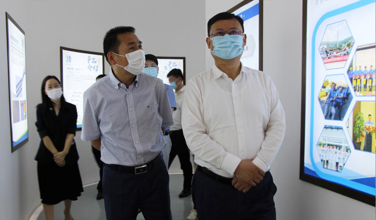 金书记一行参观企业展厅中心时,详细了解我司技术创新、产品应用、市场推广和产业链动态等情况,仔细询问企业当前防疫措施和今后发展规划等问题。